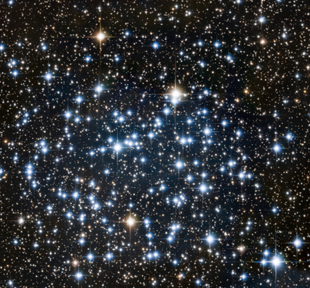 Un télescope de faible puissance permet déjà de séparer les étoiles principales. Cet amas est à 2660 al et comporte environ 400 étoiles